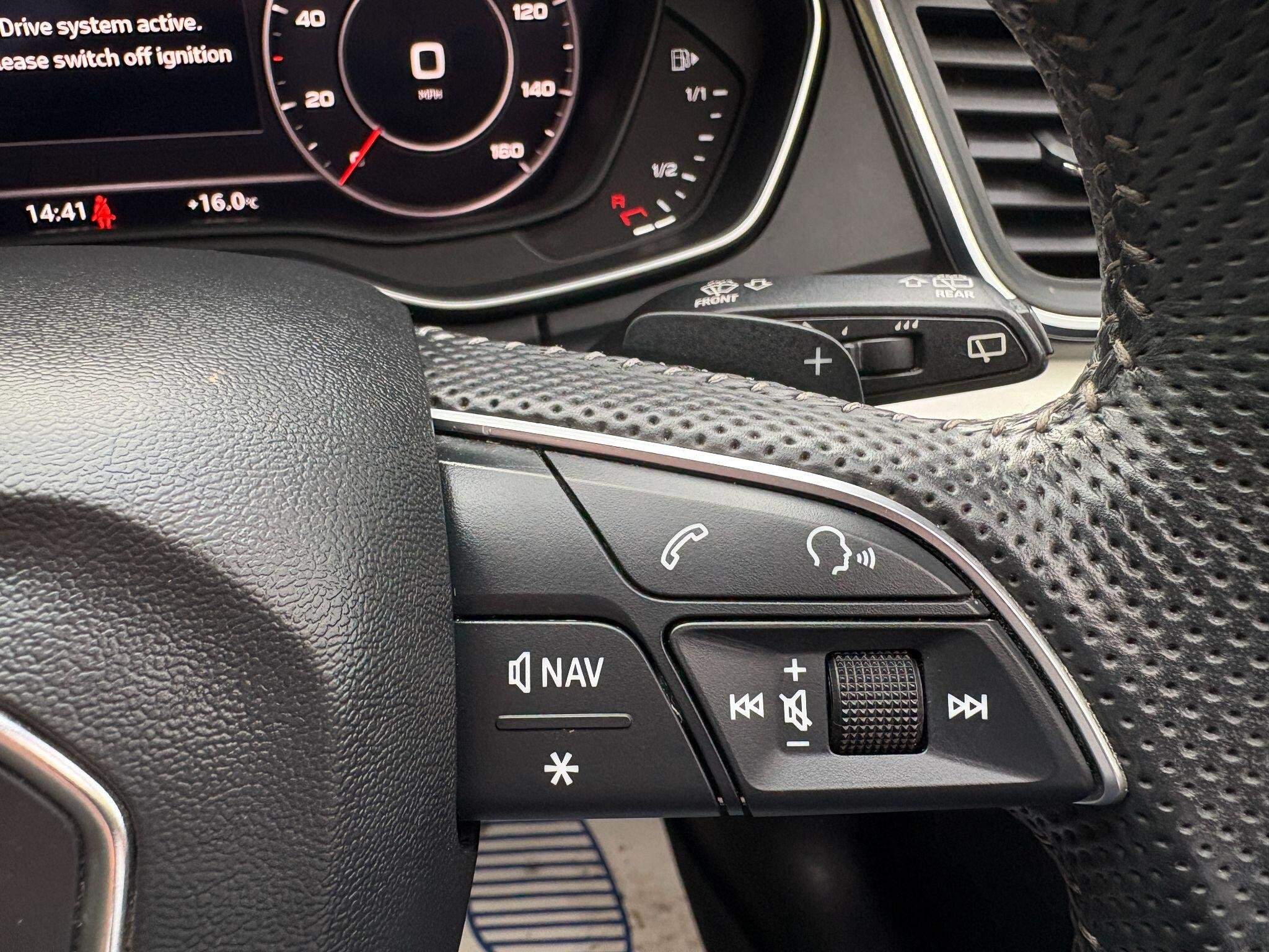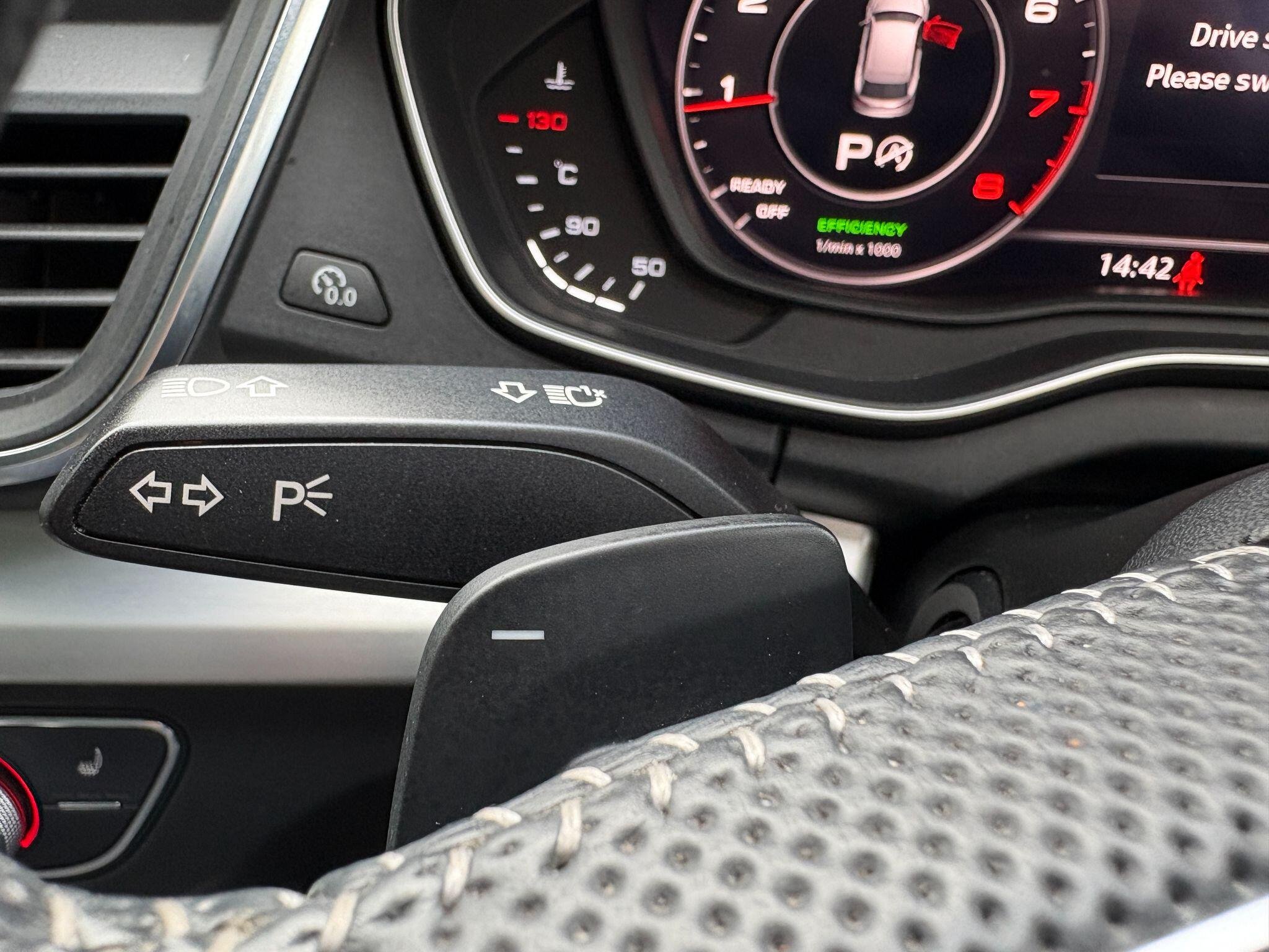 - High Multi-function 3-Spoke Leather Steering Wheel with Grips in Perforated Leather and S Badging with Gear-Shift Paddles